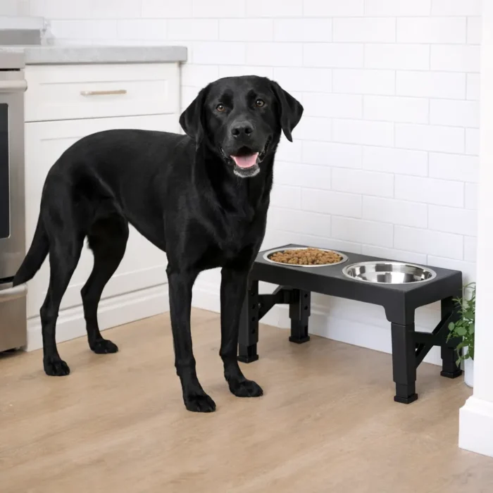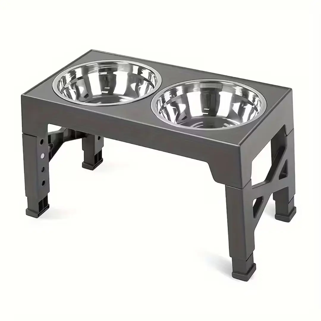 Telineessä on viisi korkeustasoa, joten korkeuden voi säätää koiralle sopivaksi. Mukana tulevat kaksi ruostumattomasta teräksestä valmistettua kulhoa.